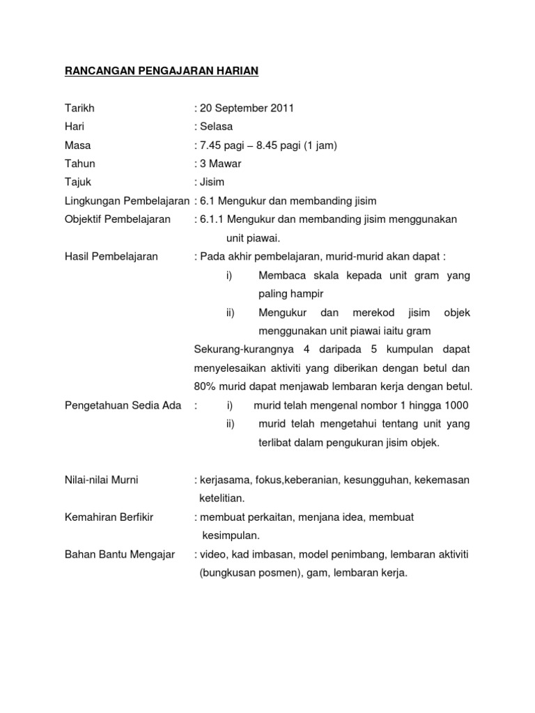 Blog rancangan pengajaran harian untuk prasekolah dan tadika terkini 2019 pada kali ini akan menunjukkan satu contoh rancangan pengajaran. Contoh paragraf narrative dalam bahasa inggri bahasa inggeris pengajaran bahasa melayu kaedah pengajaran bahasa melayu sekolah renda metode pengajaran bahasa contoh skripsi pendidikan bahasa inggris contoh. Mata pelajaran kelas bil murid tarikh/hari masa tema tajuk standard text of contoh rancangan pengajaran harian.doc. Please fill this form, we will try to respond as soon as possible. Rancangan pengajaran harian minggu :mata pelajarankelasbil murid.